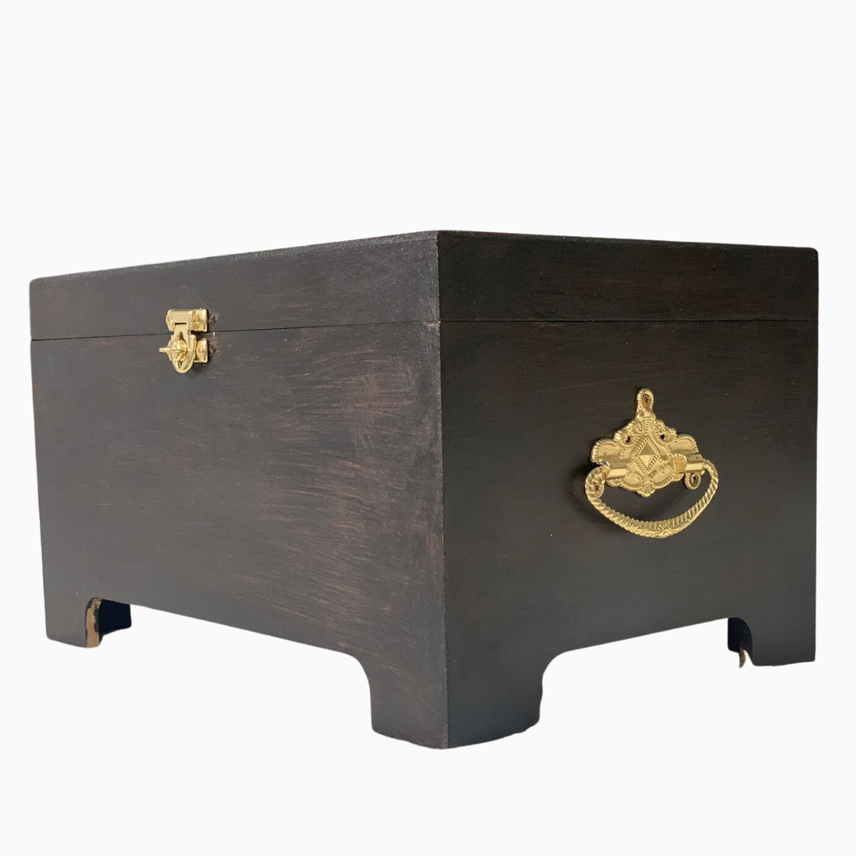 Urna para Cinzas na Elegante Cor Tabaco com Alças e Fecho Dourado – Um Tributo Distinto